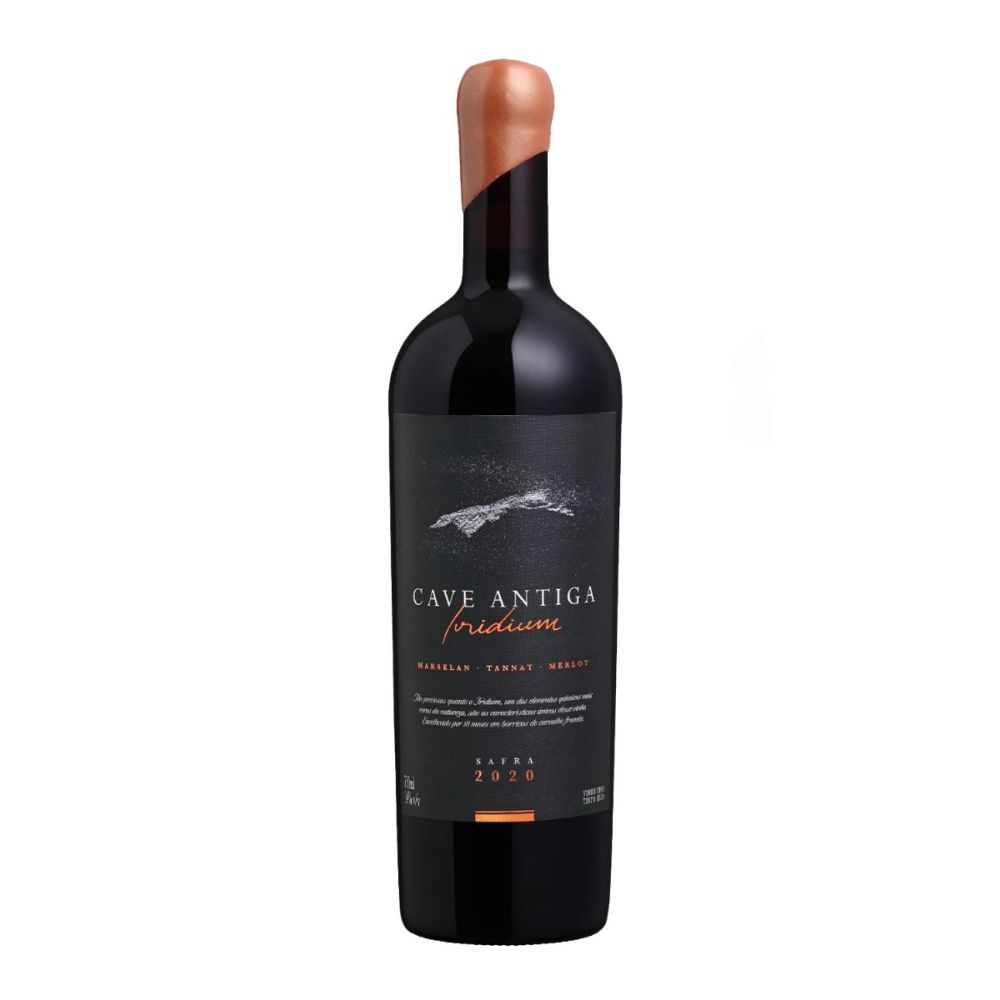 O Cave Antiga Iridium é a obra-prima da Vinícola, que é o resultado de um Blend das uvas Tannat, Merlot e Marselan colhidas na inesquecível safra de 2020. O Iridium trasmite, na sua essência a busca incessante pela perfeição combinando a complexidade e a finesse destas três variedades de uvas que entram em harmonia. O cuidado com o qual foi elaborado desde o vinhedo, complementa a excelencia da natureza e confere ao vinho estrutura, elegância e exclusividade. A notável presença de taninos surpreende e domina o vinho, com cremosidade e requinte. Esse vinho convida enófilos e apreciadores a estimular seus desejos e aspirações, eternizando momentos especiais.